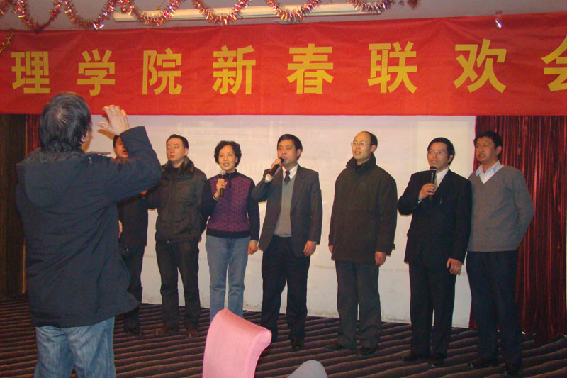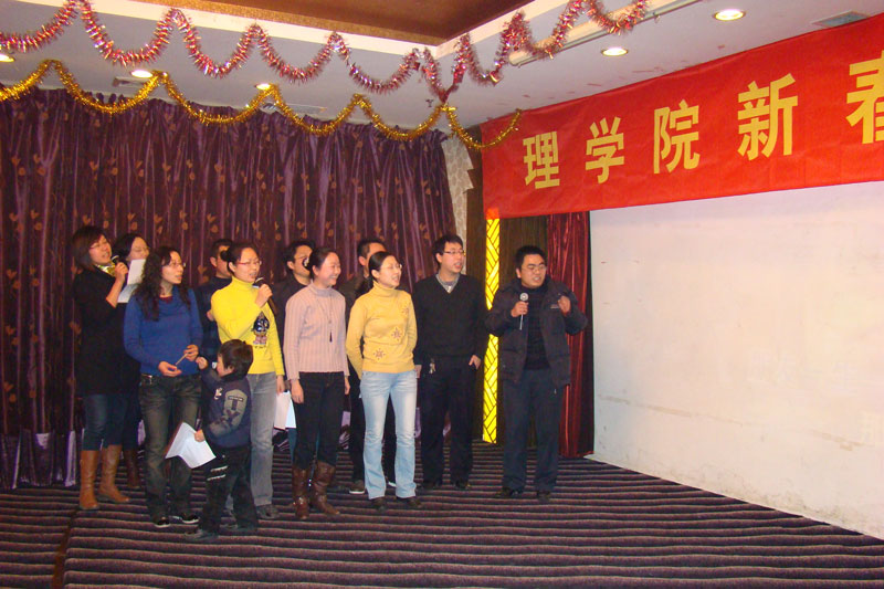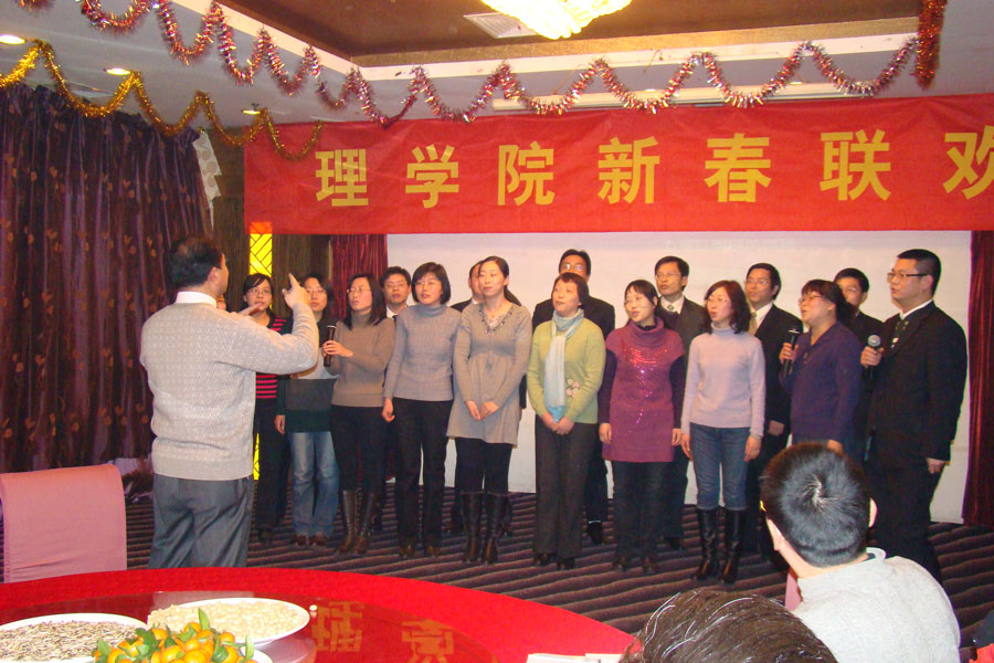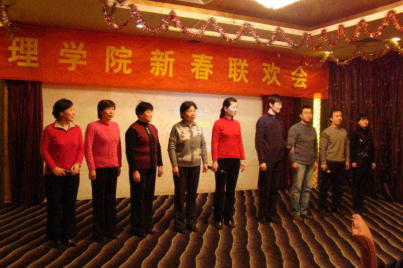 联欢会上,各系、中心都表演了精心准备的节目。其中,6个部门的小合唱赢得了大家的阵阵掌声。数学与应用数学系的“歌唱祖国”悠扬而美好。信息与计算科学系的“小草”整齐而响亮。应用物理系的一曲“朋友”让友情常青。应用化学系的“祝酒歌”由冯鸣老师伴奏,让大家体会到了美声的魅力。化学实验教学中心的“游击队之歌”节奏明快,铿锵有力。院办、学办的“北京的金山上”载歌载舞,掀起了现场的一个小高潮。