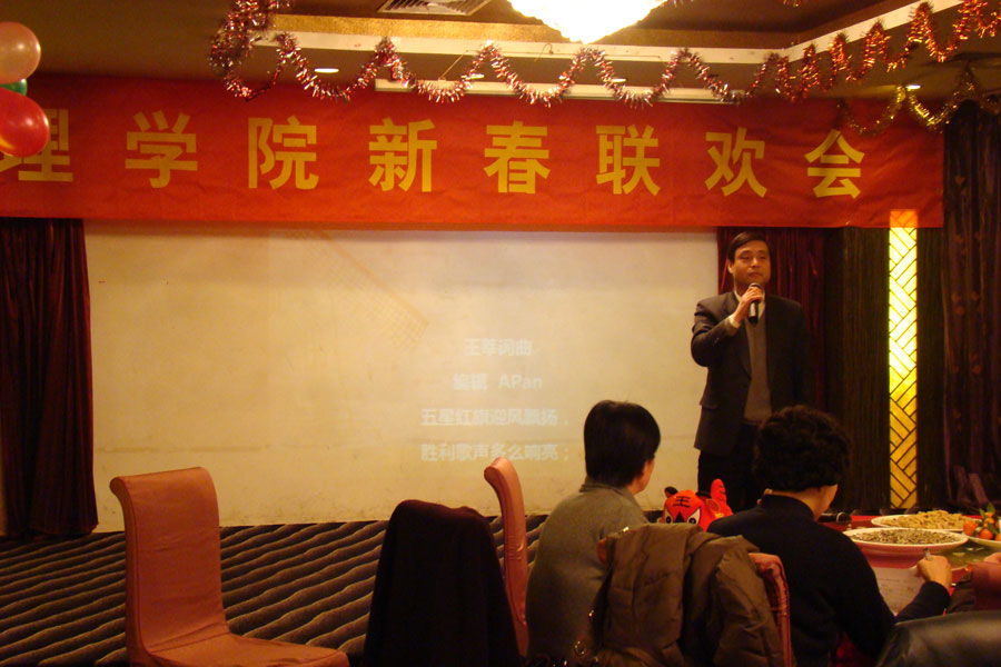 首先,公司党委书记彭光成老师致新年祝词。彭书记总结了2009年公司取得的成绩,并向全院老师送上了新年祝福。接着,施庆生副经理宣读了理公司“教书育人”和“优质服务竞赛”先进个人的表彰决定。