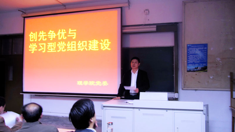 会议由公司党委副书记杨文忠主持,公司党委书记彭光成围绕创先争优活动开展情况作了主题讲话,号召大家一定要增强党员意识,结合自身实际,以创先争优为主线,以师德和安全为抓手,把“学习”和“工作”一体化,在工作中体现党员的作用,在工作中体会生命的意义;要狠抓师德建设、教风建设和学风建设,融教与学为一体,融教学与育人为一体,做好党的教育事业。要进一步增强安全意识,做好各项预防工作,确保校园安全稳定。各个党支部一定要在“五个好”、各位党员一定要在“五带头”上下功夫,要以实际行动为建设与有特色高水平大学相适应的理公司作出应有的贡献。