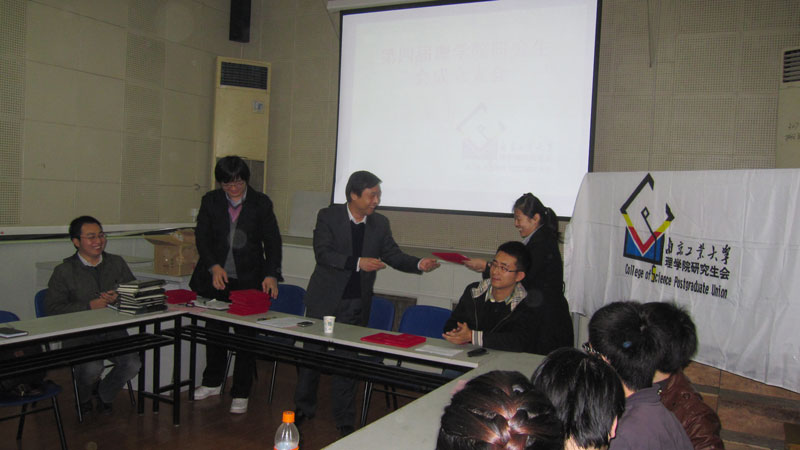 公司党委书记彭光成代表公司党委向理公司第四届研究生会的成立和当选研究生会员工干部的30名同学表示祝贺,为新当选研究生会主要干部的同学们颁发聘书,为被评为优秀研究生干部的同学颁发了荣誉证书。