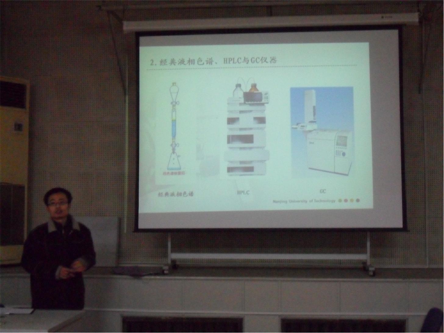 讲座内容分为五个主要部分:色谱法概述、色谱的定性与定量、高效液相色谱仪及操作、气相色谱仪及操作和高效液相色谱的应用实例。由宏观到具体,依次对于这两种色谱分析仪器向大家做出讲解。施路硕士的心得和亲身经验大大增长了同学们的实验知识和见闻,使同学们学到了许多书本上学不到的知识。