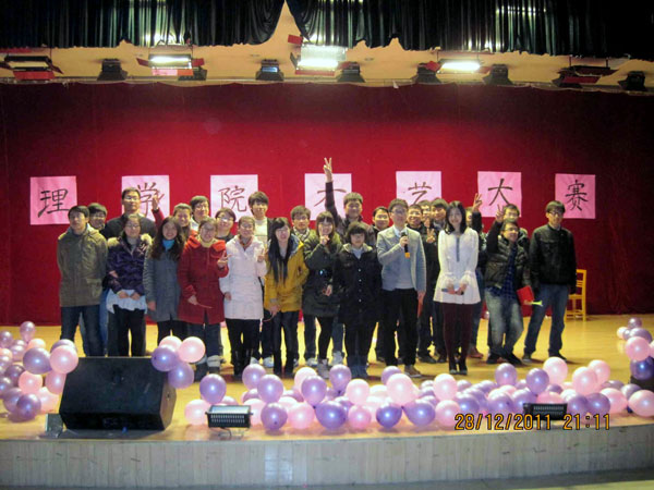 阅读次数: 发布时间:2012-01-04由院研究生会主办的理公司首届研究生才艺大赛,于2011年12月28日晚在浦江报告厅激情上演。院团委副书记崔锐博老师、校研会文艺部部长及前任院研究生会主席等一同观看了精彩纷呈的比赛,并担任了本次大赛评委。