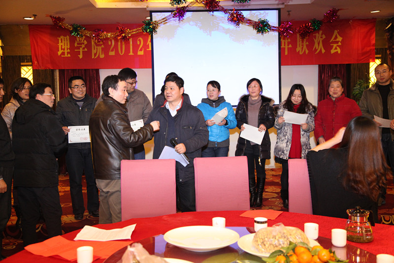 大会的第二个阶段是理公司新春联欢会,由应数系赵剑、杨赟老师主持,联欢会活动异彩纷呈,教师参与度很高,联欢会在欢乐祥和的气氛中圆满结束。