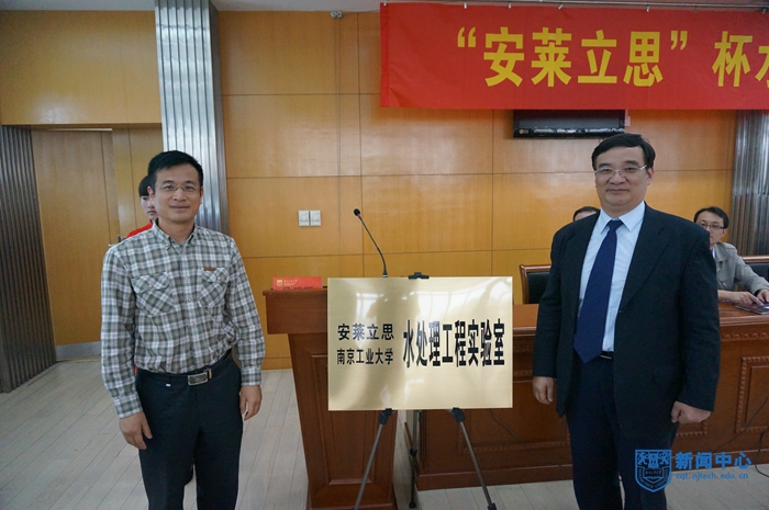 员工处郭万牛处长与安莱立思仪器科技公司唐璘总经理共同签署了合作协议书。接着,资产处蔡海彪处长与唐璘总经理共同为公司与安莱立思科技公司共建水处理实验室揭牌。随后,徐琨副总经理向理公司杨文忠书记颁发大赛启动资金十万元支票,教务处陈新民副处长向安莱立思徐坤副总经理颁发了太阳成集团校外实习基地牌匾。