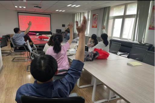 参加本次知识竞赛为支部10位党员,比赛设1名主持人,1名记分员,其余党员分两组作答。设置必答题、单选抢答题、多选抢答题、判断抢答题,内容涵盖了党史、新中国史、改革开放史、社会主义发展史等应知应会基本知识,现场以答题计分的方式进行。答题过程中,各组党员沉着冷静、团结协作、你追我赶、奋勇答题,抢答题环节更是将活动带入高潮,上演了一场精彩纷呈的知识竞赛,充分展现了支部党员积极向上、锐意进取的精神风貌。