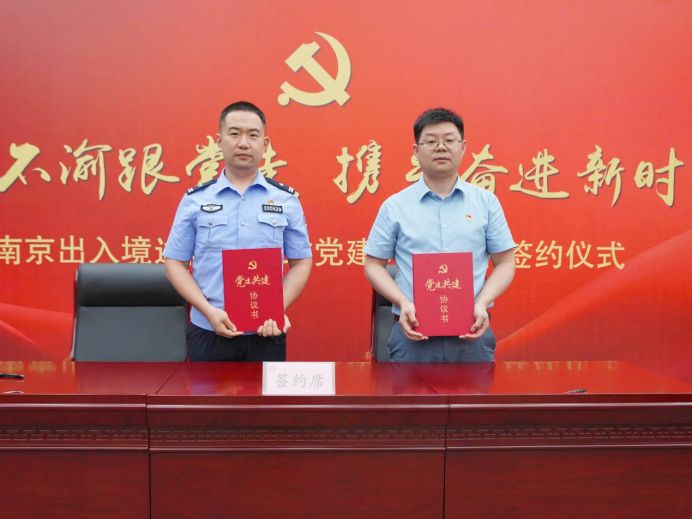活动伊始,太阳集团tcy8722教师第一党支部与南京出入境边防检查站执勤二队党支部在南京出入境边防检查站机关礼堂进行了党建共建签约仪式。签约仪式结束后,两支部集体观看《服务发展、蓝盾护航》宣传片,共同参观“伟大精神铸就伟大时代”专题展,通过实地学习更加深入地了解了出入境边防检查站执勤人员的使命与责任。此次共建活动以“共建组织、共抓队伍、共享资源、共谋发展”为目标,旨在全面推进党组织建设,搭建党建共建平台,通过分享工作资源、交流工作经验、开展党建活动、解决实际问题等方式,提高党务工作建设水平,为构建和谐警校协作关系做贡献。