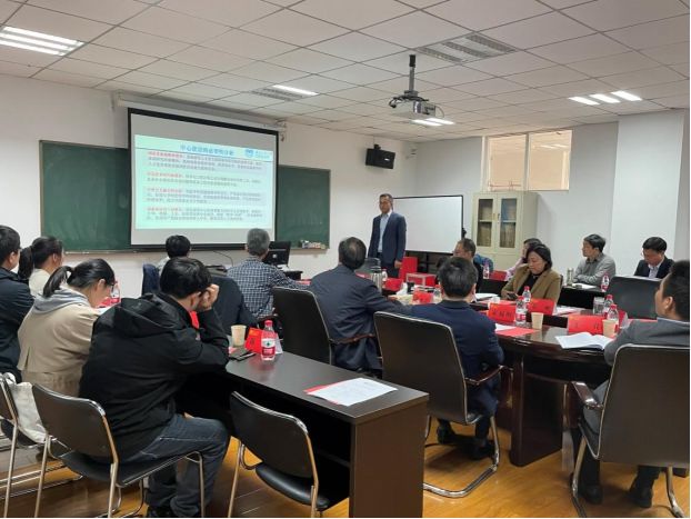随后,科研平台的负责人经理马树建从校级科研平台建设的必要性、现有基础条件、研究方向和内容、发展规划与目标、发展保障机制等五个方面向与会专家进行了详细的汇报。