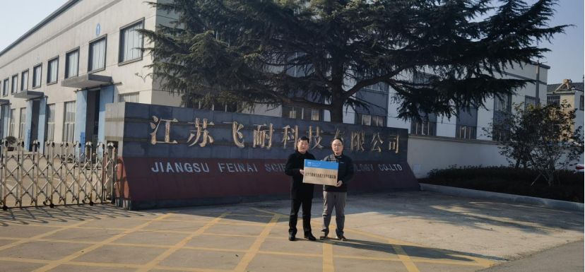 交流中,江苏飞耐科技有限公司总经理钟总对公司一行的到来表示欢迎,并介绍了公司的发展情况、成长经历、人才需求和培养模式。公司党委副书记蔡亚峰代表公司向公司对毕业生就业工作的支持表示了感谢,介绍了公司专业建设、学科发展、人才培养和毕业生就业等基本情况。期间,校企双方举行了校外老员工生涯教育实践基地挂牌仪式。