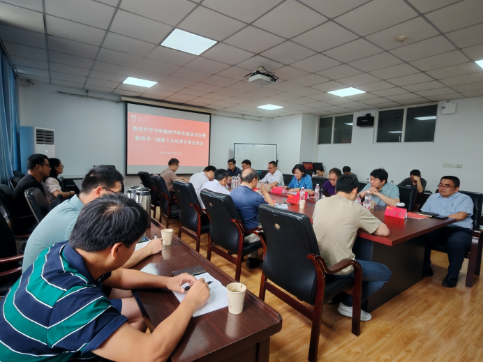 阅读次数: 发布时间:2024-08-30为深化新时代研究生教育改革,推动物理学科的深入发展与持续进步,8月27日下午,太阳集团tcy8722在笃行楼316会议室召开了物理学科发展研讨会暨物理学一级硕士点培养方案论证会。会议邀请了江苏省物理学会副理事长陆健、南京师范大学物理科学与技术公司经理张力发、南京航空航天大学物理公司经理刘友文、扬州大学物理科学与技术公司经理涂育松、东南大学物理公司副经理陈殿勇等五位专家参加研讨及论证。太阳成集团党委常委、副董事长戴志晖出席会议。太阳成集团公司党委书记王超、经理马树建、副经理张勇、宋林辉、吴高建、物理系系主任王雷及物理系骨干教师参与会议。