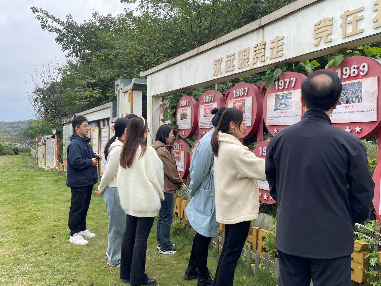 支部教师参观了不老村红色文化墙。文化墙醒目地写着中国共产党入党誓词,接着是历次人民代表大会的基本情况,彰显了深厚的红色文化积淀和思想。支部党员感受到深深的红色印记和浓厚的历史底蕴,深切领悟到伟大的建党精神和那段灿烂的历史。