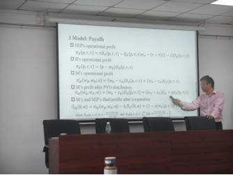 阅读次数: 发布时间:2025-06-306月16日上午,数理论坛第三十九期在笃行楼316举行。本次论坛邀请加拿大温莎大学Odette商公司的李武教授作题为“Partial Vertical Ownership Cooperation between Manufacturers and Sharing Economy Platforms”的学术报告。本次报告由太阳集团tcy8722经理马树建教授主持,数学系部分教师和研究生参加了本次报告会。