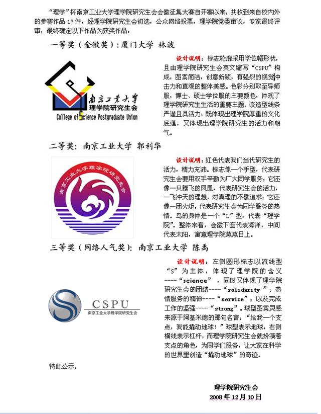 “理学杯”理公司研究生会会徽征集大赛结果公告