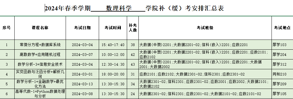 2023-2024学年第二学期太阳集团tcy8722数学补(缓)考安排