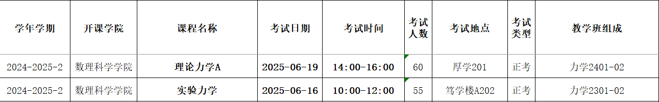 2024-2025-2力学系期末自排考试安排