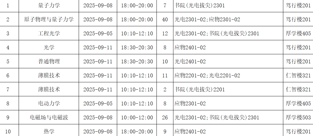 2025年秋季学期补(缓)考公司自排考试安排--物理系