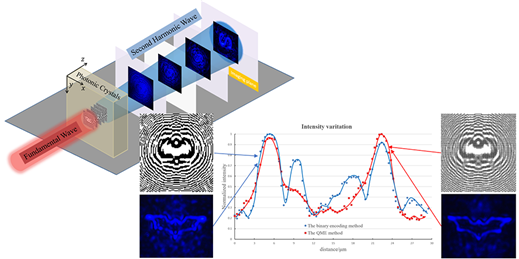 在这里,我们提出了一种用于任意非线性光场重构的广义计算全息编码方法,我们称之为准多值编码方法。在文章中,我们展示了当基波垂直或平行于晶体极化方向传播时,如何将这种广义编码方法应用于设计非线性光子晶体结构从而实现高质量的光场调控。