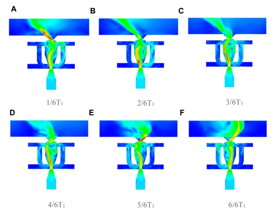 阅读次数: 发布时间:2023-11-23自激励流体振荡器是一种重要的非定常流动控制技术。压气机叶片上的流动分离会严重影响航空发动机的工作效率,而非定常流动控制技术能够有效推迟流动分离的发生。本文提出了一种带有共振腔和可移动反馈通道的新型自激励流体振荡器,并通过理论和数值模拟研究了这一新设计的流动控制特性。数值结果表明,反馈通道位置的变化可以改变反馈通道和共振腔的耦合特性,从而产生不同数量级的自激励射流。在处理复杂流动分离问题时,这种频率可调节的自激励流体振荡器将具有更强的适应性。同时,射流频率调节不需要高频活动机构或是外部能量介入,这使其在不同工况下具有更好的工程实用性。此外,在部分条件下观察到射流主频切换的现象,这可能有助于提高压气机叶片在非设计工况(主频变化或具有多个主频)下的工作效率。