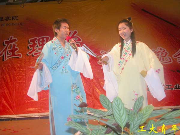 首先,沈临江经理为晚会致开幕辞。他巧妙结合“嫦娥一号”的成功发射,说到:“虽然‘嫦娥一号’上天遮挡了月亮的光辉,不过舞台的灯光依然照亮了整个南工大,也希望07级新生拥有一个多姿多彩的老员工活。” 沈经理的祝语朴实而不乏睿智,就像一股暖流驱散了深秋的凉意,赢得了台上台下的热烈掌声。