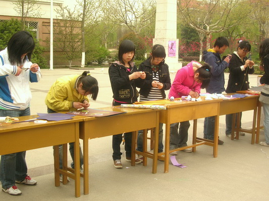 阅读次数: 发布时间:2008-04-03四月和煦的春风,吹拂着每一位工大学子的面容,拨动着他们的心弦,让他们许下春天的心愿,创作出一件件富有美感情趣的作品。在“淳凤”手工艺品制作比赛上,同学们踊跃参加,各展其才,制作出了各具特色的手工艺品,
