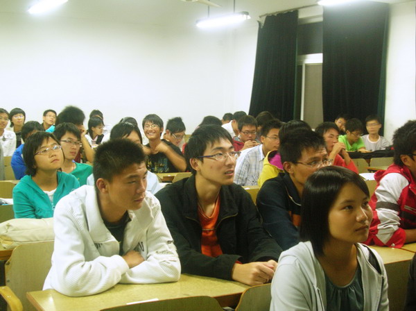 为了让同学们更深刻地理解数学,对数学产生兴趣,了解数学的发展历程、以及对社会发展的重要意义,由校团委主办,理公司分团委承办的“数学:新的黄金时代”讲座于2008年10月14日晚在厚学205成功举办。