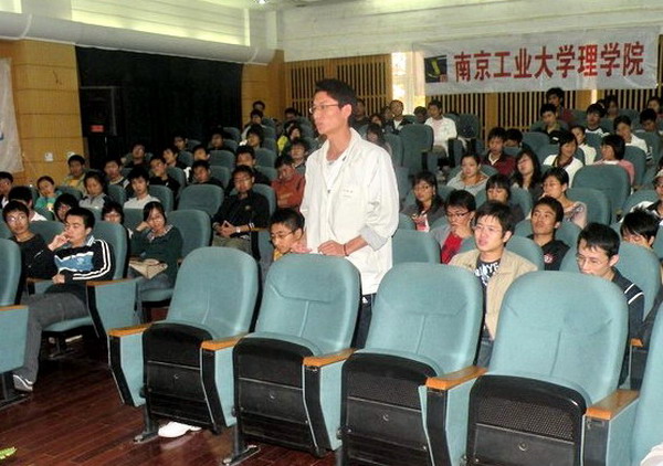 在启动仪式上,中丹药物研究院行政总监董泽军先生就中丹集团股份有限公司的相关情况做了简要介绍。接着,冯亚兵博士作了重要讲话。冯博士强调化学专业员工的安身立命之本是动手能力,他说化学是“做”出来的而不是“算”出来的。然后,冯博士提了几个小问题,并就这些问题与同学们展开了讨论,以实例指出化学实验中的重要细节和严谨性。接下来,在场的同学们自由提问,向冯博士请教。冯博士以幽默风趣的小故事一一解答了同学们的困惑,并以自己的亲身经历指出学化学一定要安静、沉着、多沟通,赢得了全场的掌声。最后,在热烈的掌声中,第七届“中丹创新杯”实验技能大赛启动仪式顺利结束,标志着第七届“中丹创新杯”实验技能大赛的帷幕正式拉开。