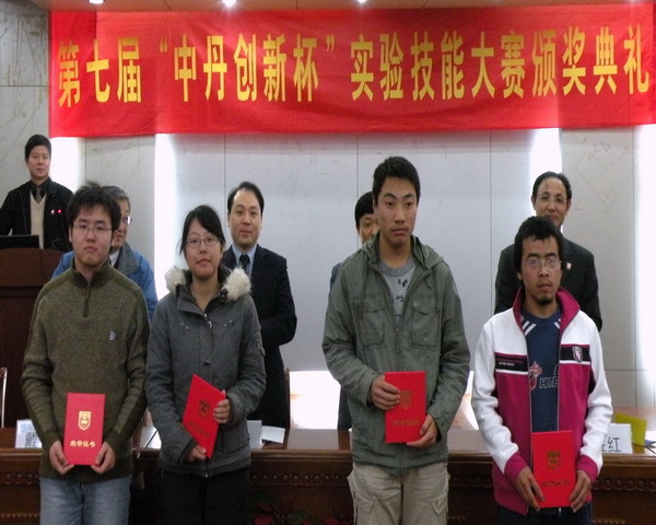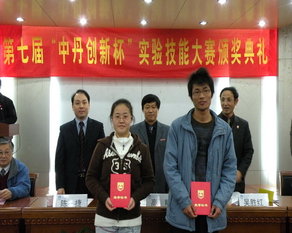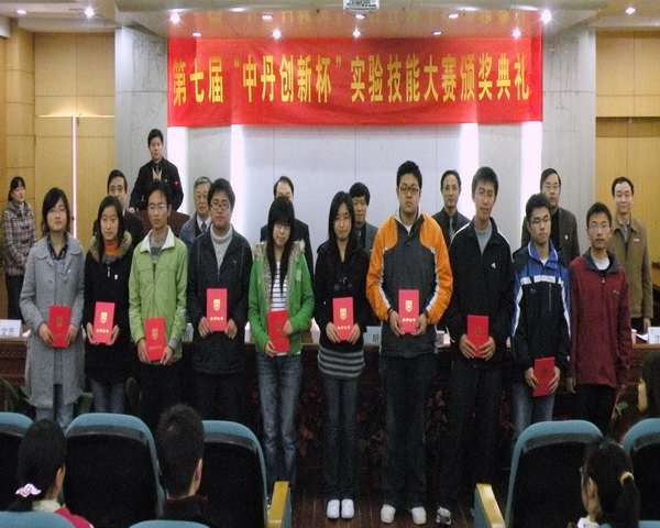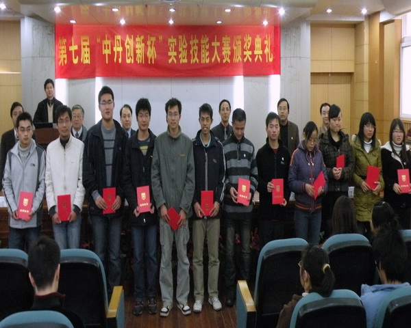 阅读次数: 发布时间:2008-12-12由校员工处、校团委主办,江苏中丹集团股份有限公司赞助,理公司分团委承办的第七届“中丹创新杯”实验技能大赛历时近两个月,已圆满结束。12月10日下午1:30,大赛颁奖典礼在厚学报告厅隆重举行。
