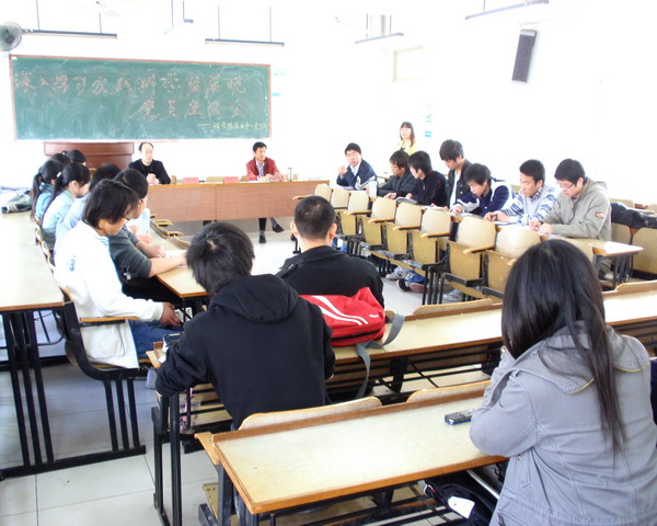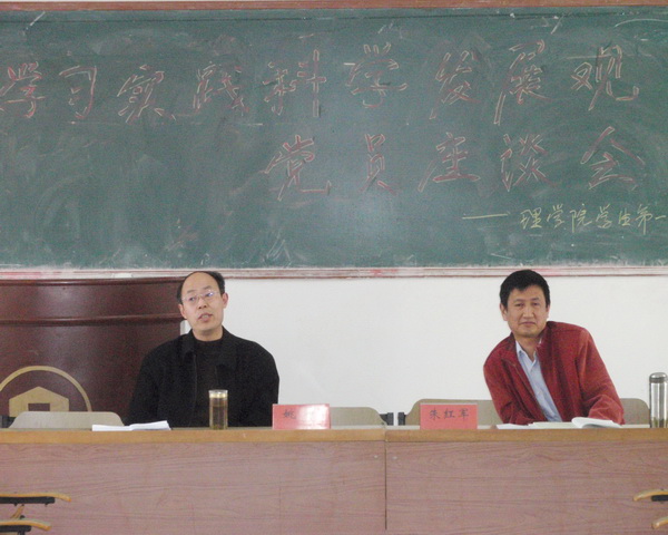 支部党员纷纷结合自身实际情况谈了一些学习实践科学发展观的体会,同时向姚成、朱红军两位老师提出了一些在专业学习和实际生活中遇到的问题。有同学提出,应通过学习科学发展观找出自身不足,及时加以改正,得到了老师的肯定。有的同学询问了专业学习和考研等各方面问题,得到了两位老师全面的回答。