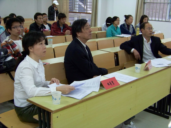 自述之后就是答辩环节,各位评委针对同学们的实验进行提问,以检验他们对实验的认知和掌握程度。教授们还提出一些要求,实验题目要切合实验实际;实验原理要可行,符合生产实际;实验步骤要力求简便有效,减小开销;处理实验数据,要本着严谨,务实的态度等。评委老师们的精彩点评博得了在场的同学们的阵阵掌声,也在这次活动中对自己的课题有了更进一步的认识,在观摩其他选手的答辩过程中也拓宽了自己的视野。