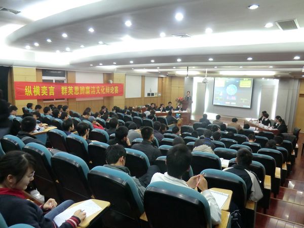 阅读次数: 发布时间:2010-11-09为了深入开展廉洁文化教育,促进和谐校园建设,11月3日晚6:30,理公司举办的“纵横奕言 群英思辨”廉洁文化辩论赛总决赛在厚学报告厅成功举办。担任本次辩论赛评委的是江苏省老员工辩论赛专家评委、政治教育公司经理助理宗元勇、校员工处副处长杨琦、校团委副书记冷庆丰和理公司党委副书记杨文忠。