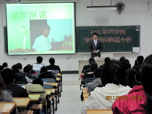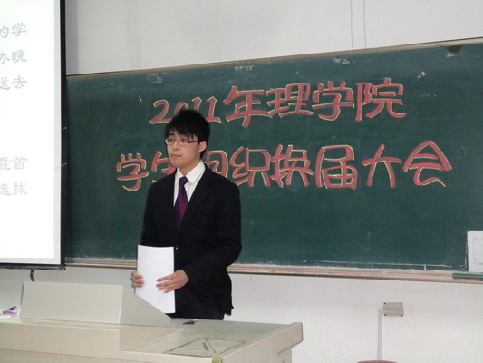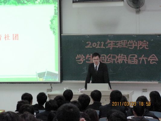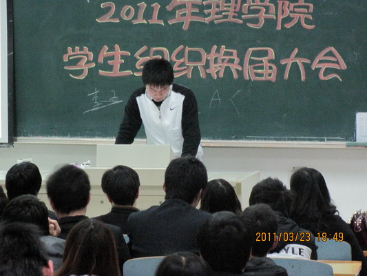 阅读次数: 发布时间:2011-04-023月23日晚六点,2011年员工组织换届大会在厚学601隆重举行。理公司员工工作办公室主任夏玚玚、分团委书记杨瑾、分团委副书记崔锐博、魏文斌出席了大会,理公司员工会、科协、心协全体成员以及部分大一员工参加了本次大会。