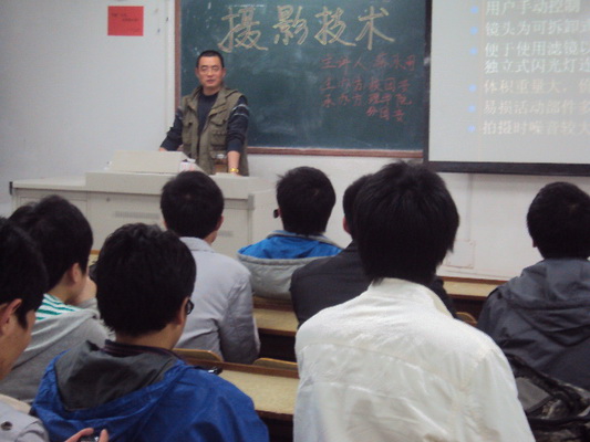 蔡老师本着“摄影技术是非艺术人士从事艺术行业最有效、最方便的方式,不需要专业的、长时间的锻炼”的个人观点,从相机种类、取影原理与视差、摄影镜头、镜头的分类与使用、闪光灯和数码相码等方面具体介绍了摄影技术的基本内容。同学们都全神贯注,专心致志地倾听蔡老师的讲解。