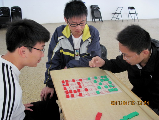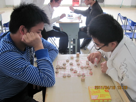 本次比赛包括中国象棋、五子棋、军棋和益智拼图四个项目,同学们之前都踊跃报名参加,并提早来到比赛场地。下午1:30,比赛正式开始,参赛选手们都跃跃欲试、专心致志地投入到自己的比赛项目中,老员工活动中心内充满了浓浓的竞争气氛。中国象棋是一项有着深厚文化底蕴的比赛项目,参赛选手们也是眉头紧锁若有所思,他们巧妙地排兵布阵,设计战术,一旁的观众不时地点头默赞。五子棋比赛每一轮采用三局两胜制,由于选手们都深知“一招不慎,满盘皆输”,因此都显得沉着冷静从容不迫。参加军棋比赛的选手也积极投入其中,其乐融融。在益智拼图比赛现场,只见选手们每两人为一组密切配合着,这是个考验耐力的项目,他们也都不负众望,用默契和耐心有条不紊地进行着。经过两个小时的激烈角逐,四个比赛项目的冠、亚、季军相继产生,本次比赛圆满落幕。