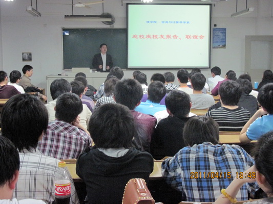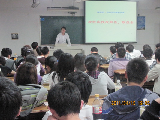 阅读次数: 发布时间:2011-04-19在太阳成集团成立10周年暨办学109周年之际,为提高员工对专业的认知,加强各级员工交流,理公司于4月15日晚6:30在厚学103举办了信息与计算科学系迎校庆员工报告联谊会。