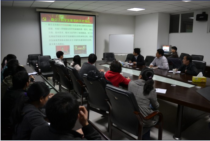 阅读次数: 发布时间:2012-11-23初冬的天气微微有一丝凌冽,但窗外阵阵的寒风并不能冷却理公司各党支部贯彻学习十八大报告精神的澎湃热情。11月22日,理公司在笃行楼316举办了以“新起点,新航向”为主题的学会十八大精神的报告会,出席本次会议的公司领导有公司党委书记杨文忠,公司党委副书记马明辉,经理助理顾国亮等。参加会议的还有各教职工党支部书记,辅导员范渊凯,以及各研究生、本科生党支部书记等。