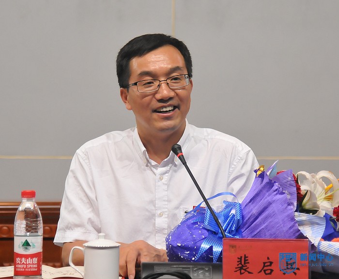 校纪委书记崔益虎教授主持仪式,并介绍了裴启兵的简历。