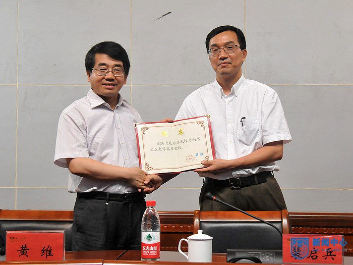 董事长黄维院士为裴启兵教授颁发了客座教授聘书并佩戴校徽。
