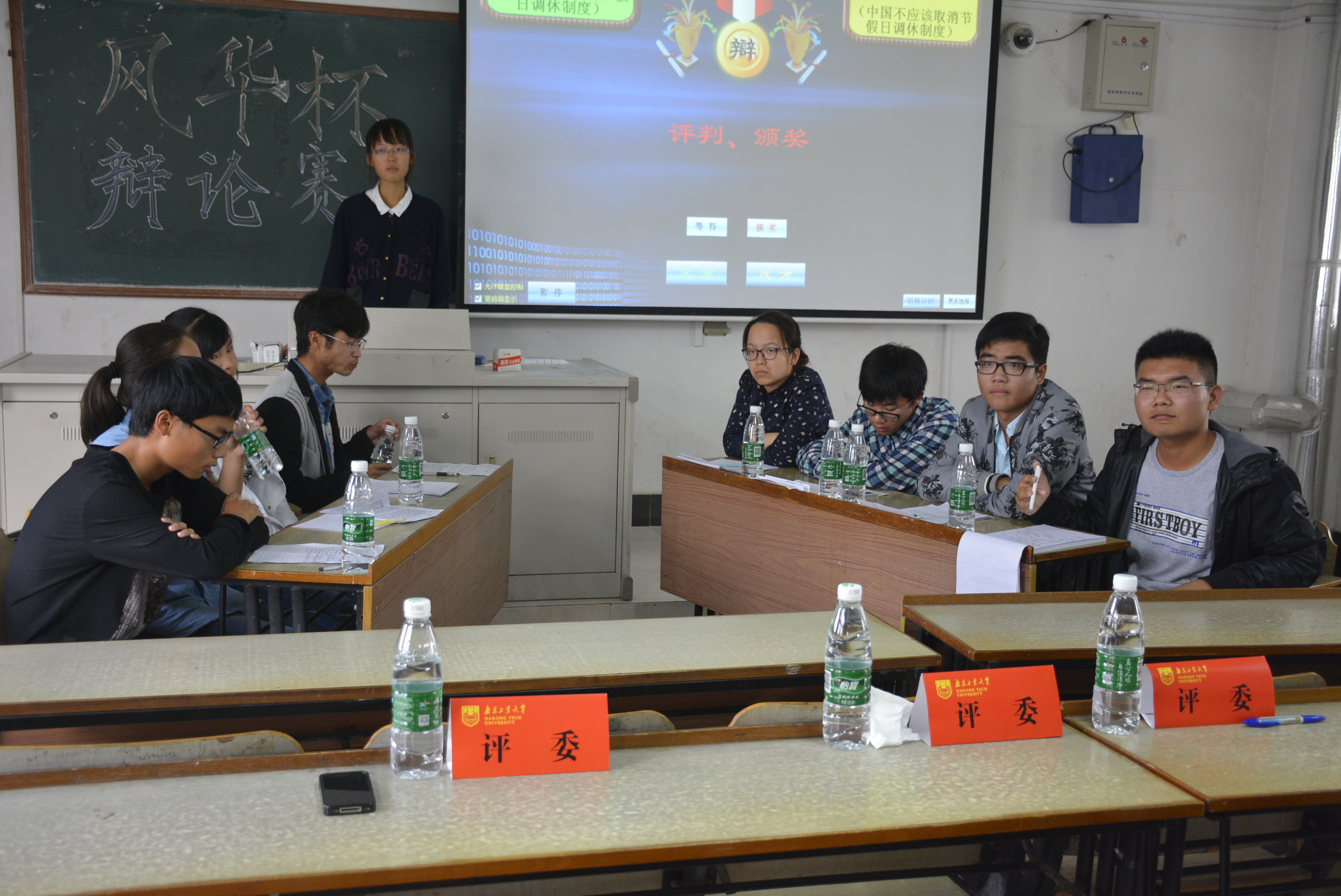 第一场辩论赛是由应物1502对战信科1501。正方应物1502,持有的观点是“中国应该取消节假日调休制度”,反方信科1501,持有的观点是“中国不应该取消节假日调休制度”。双方主要就调休之后大部分人旅游所带来的交通问题,踩踏问题和景点破坏问题进行了激烈的讨论,同时双方还讨论了文化传承问题。反方认为节假日调休可以给大家更多的时间去名胜古迹旅游,增进对中国文化历史的了解,而正方认为这样可能会增加交通压力。最终,由反方信科1501获胜,反方三辩是最佳辩手。
