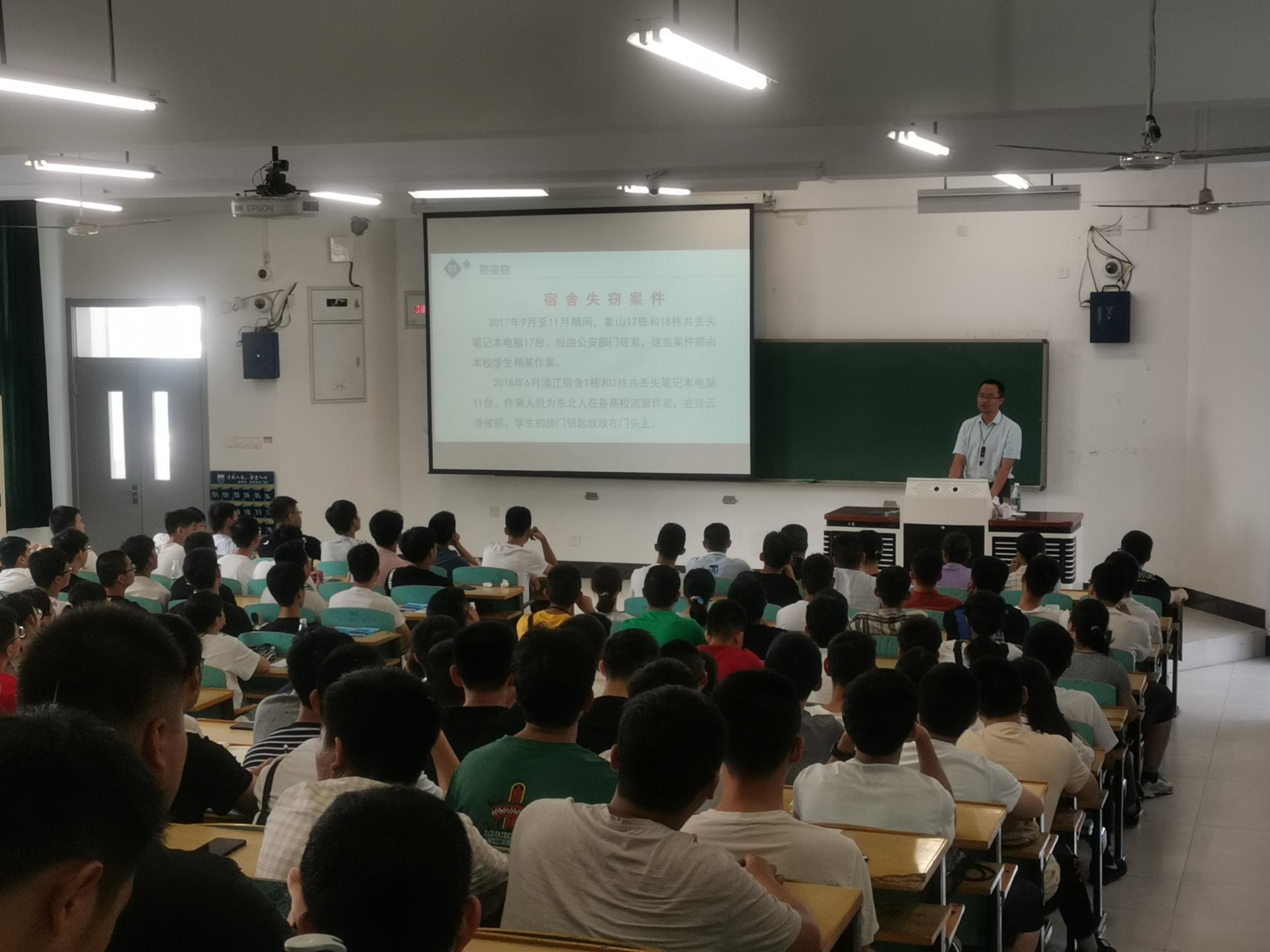 阅读次数: 发布时间:2019-09-10为了建设平安和谐校园,提升新生防范意识。9月9日上午,校园安全部副部长徐东老师在厚学300为公司2019级新生带来了一场别开生面的安全教育课。