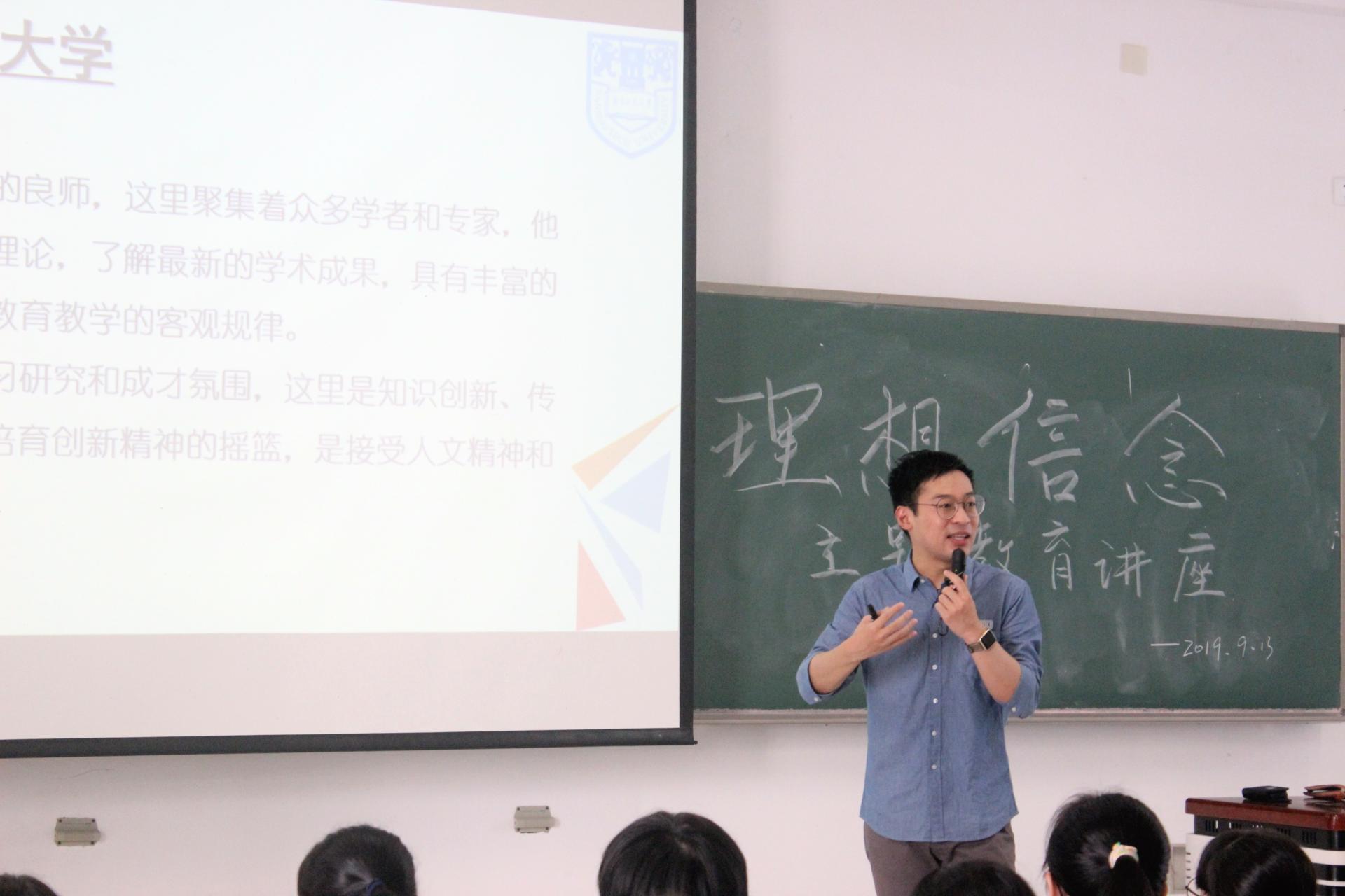 讲座伊始,滕老师向新生们解释了什么是大学、大学培养的是怎样的人、来到大学的目的,并强调在大学里不应当只沉醉于自然科学的学习,也应该加强人文科学的学习,增加自己的文化底蕴和内在修养。随后,滕老师从讲解新时代青年的特色出发,通过对比五四运动时期的新青年和当代新青年,启发同学们对大学做什么样的人、怎样做人、树立怎样的价值观等问题进行深入思考。最后,滕老师点明理想与信念内涵,解释了理想与空想的差别,强调理想从现实中产生,具有实践性,并以自己的亲身经历为例,让同学们对理想有一个更好的认识。演讲将近结束时,滕老师再一次向新生们介绍了太阳成集团明德、厚学、沉毅、笃行的校训,并从自己的角度阐述了对于校训的理解,希望大家都能做好自己,迎接美好未来。