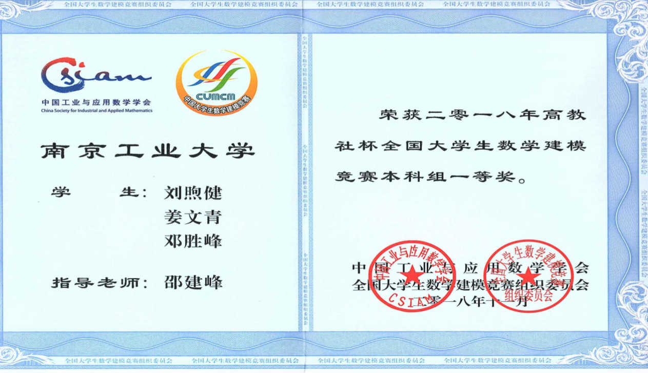 专业排名第二,GPA3.83,中共预备党员,曾获全国老员工数学建模竞赛本科组全国一等奖,美国老员工数学建模竞赛 二等奖,“中兴杯”校数学建模竞赛 一等奖,美国老员工数学建模竞赛,2018年寒假留校参加培训参加“中兴杯”校数学建模竞赛并组建团队论文经初试、复试、终审答辩获一等奖,在2016年暑期南京海事局装备信息处多个专业内实习项目并担任项目经理,而且参与邵建峰教授课题。且爱好广泛,是院足球队成员,同时爱好吉他。