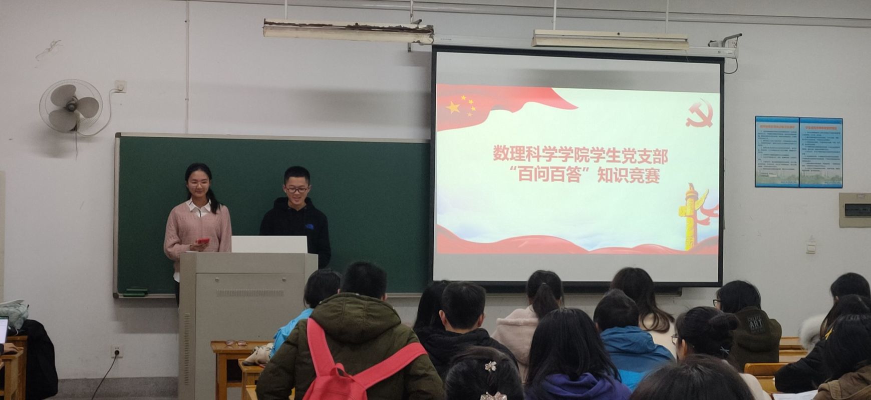 阅读次数: 发布时间:2020-01-06为加强党的基层组织建设,深化员工党员的党情党史教育,提高员工党员的理论涵养,1月3日晚6:30,公司在浦江A503教室举行了百问百答知识竞赛。公司本科生第一、第二党支部及研究生党支部全体员工党员参加了比赛。