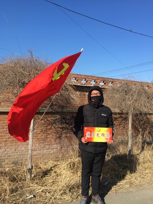 此次寒假,王兴亚同学本怀着喜悦的心情回家欢度新春,但突如其来的疫情使全国上下充满着焦虑、恐慌的气氛,其家乡所在的市县虽然病例不多,但疫情防控的压力仍然很大。作为外省归辽人员在家主动隔离14天且无症状后,王兴亚同学主动地参与到辽宁省辽阳市辽阳县黄泥洼镇付五道村村委会的疫情防控工作中去。在得知村里的党员年龄偏大后,王兴亚同学主动地向村委会申请去村口站岗检查进出的车辆,做好外来人员的登记情况。东北的2月份,外面的气温低至零下十几度,但看到党旗飘扬在一线,王兴亚同学并没有畏惧严寒,他的心里只有一个想法:“有疫情的地方,党员尤其是作为支部书记必须冲锋在前!”