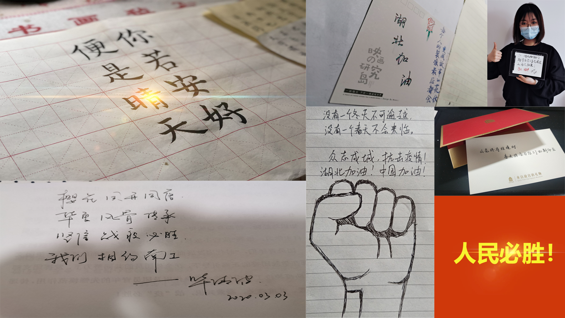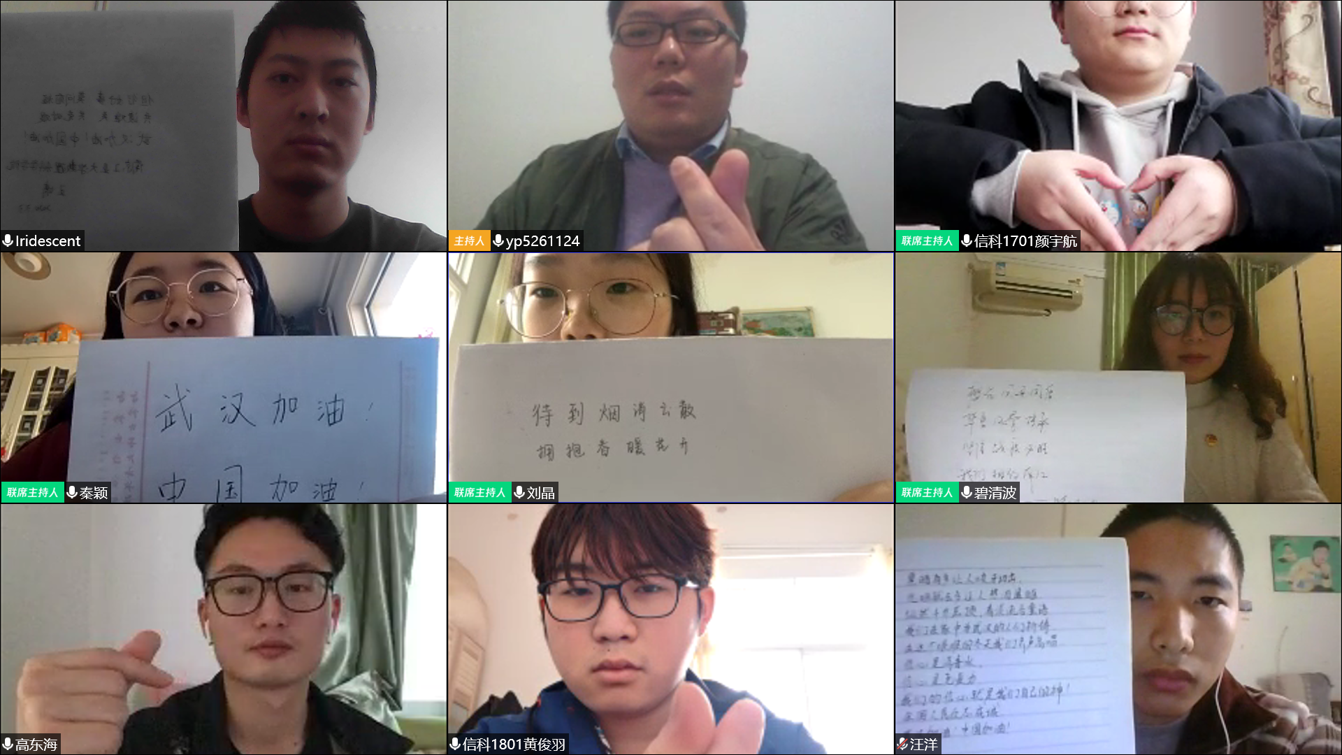 线上活动中,我们展播了公司师生为湖北籍同学制作的小礼物:一封封加油书信,一句句暖心话语,一张张温馨卡片,一个个祝福视频,承载着太多公司师生对湖北籍同学的关心与关爱。此外,不少班级利用班费自发为湖北籍同学寄送棉签、洗手液、消毒酒精等生活清洁物品。交流中,信科嵌1701的刘晶同学说:“在这次突如其来的肺炎疫情中,宅在家里也感受到了来自公司,师生和班集体的关怀。浑身充满热量,很是感动。”大数据1902的邓婧彬表示:“在成立临时团支部的视频会议上,看到湖北的同学们都平安健康,我感到很亲切很幸福。群里每天都能看到辅导员老师和同学们分享的各种励志和加油鼓劲的话语,我坚信战疫必胜!武汉加油!”信科嵌1801的黄俊羽同学讲到:“一开始,在网上看到一些关于武汉的不实谣言,作为一个武汉人,我心理很难受。后来看到全国各地都派出医疗队驰援武汉,我更加充满信心。疫情结束之后,欢迎大家来武汉游玩赏樱花。”
