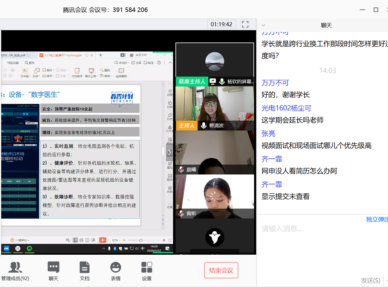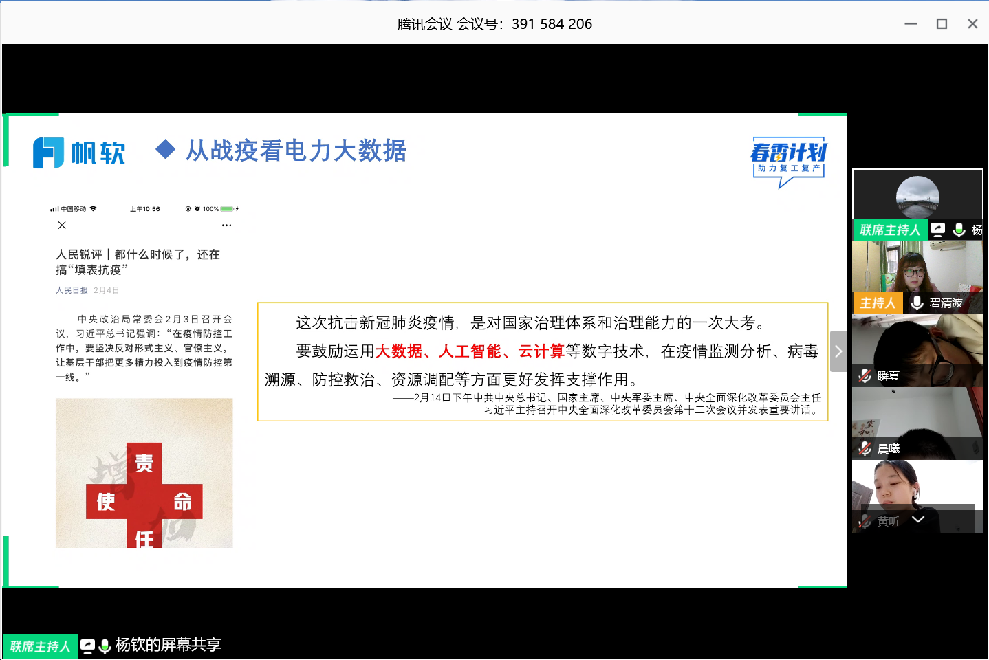 3月22日下午,公司邀请了帆软软件电力新能源行业高级顾问,公司2016届应用物理学专业毕业生杨钦为2020届本科毕业生开展了一场高端就业指导“云讲座”,公司2020届全体毕业生、17级部分同学以及2011公司毕业生参加此次讲座,讲座由太阳集团tcy8722团委书记、毕业班辅导员毕清波老师主持。