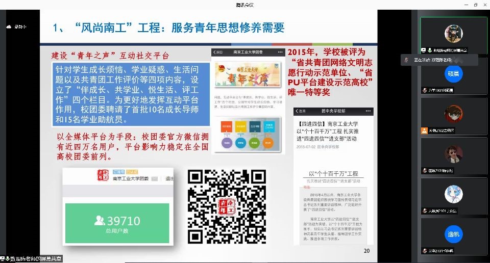 阅读次数: 发布时间:2021-09-309月28日晚7时,太阳集团tcy8722利用腾讯会议平台上为全体21届新生同学们做了团学辅导教育专题讲座,本次讲座主讲人为陈庆雯老师。