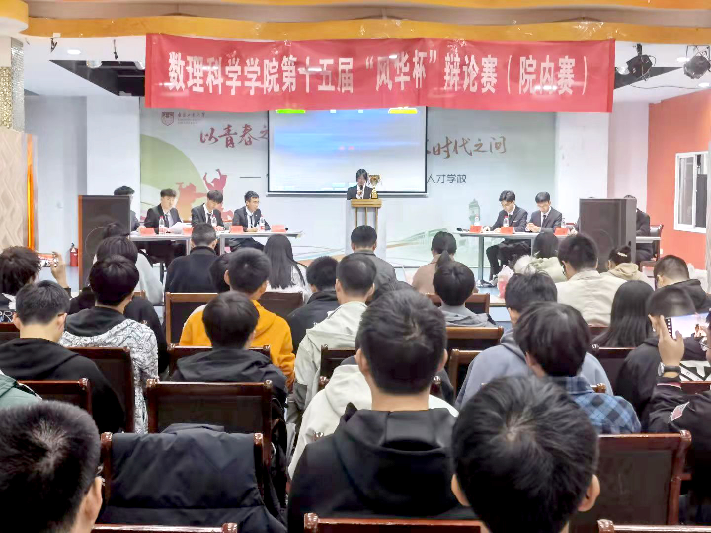 本次辩论赛参赛双方为力学2102(正方)和应物2101(反方),双方围绕“青年想成为怎样的人更重要?还是青年不想成为怎样的人更重要?”的话题展开辩论。双方辩手围绕辩题从多角度切入,唇枪舌剑。经过激烈的辩论,最终应物2101获得冠军,力学2102获得亚军,最佳辩手为正方四辩赵治良。辩论结束后,几位评委肯定了双方辩论角度的多样性,也指出双方辩论的诸多不足。最后,由团委副书记陈庆雯为应物2101颁发冠军奖杯,院员工会代表冯时为力学2102颁发亚军奖杯,院研究生会主席团成员毛顺远为赵治良颁发最佳辩手奖杯。