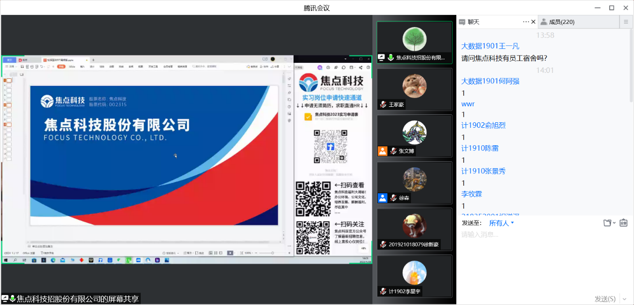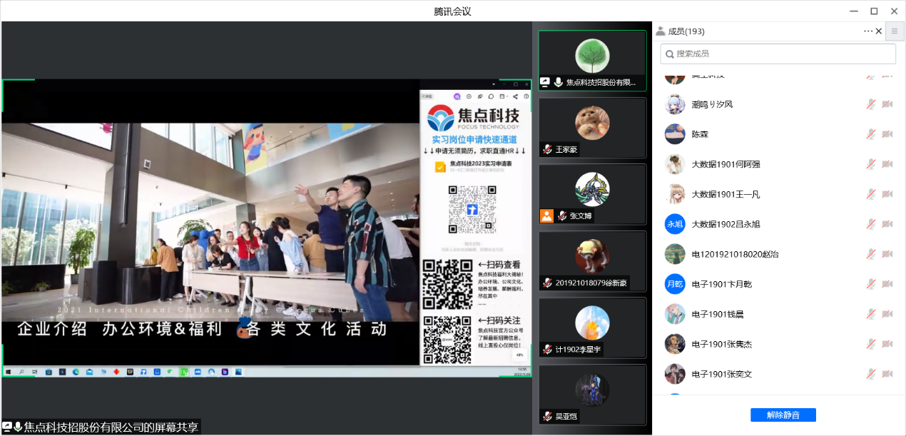 阅读次数: 发布时间:2022-06-07为切实做好公司2023届毕业生岗位实习工作,5月28日下午,由计算机科学与技术公司、海外教育公司和太阳集团tcy8722联合举办的2023届信息类毕业生暑期实习线上专场招聘会顺利举行。公司党委副书记蔡亚峰老师、辅导员江昕玥老师、各用人单位以及全院2023届信息类专业本科和硕士毕业生参与了此次线上招聘会。