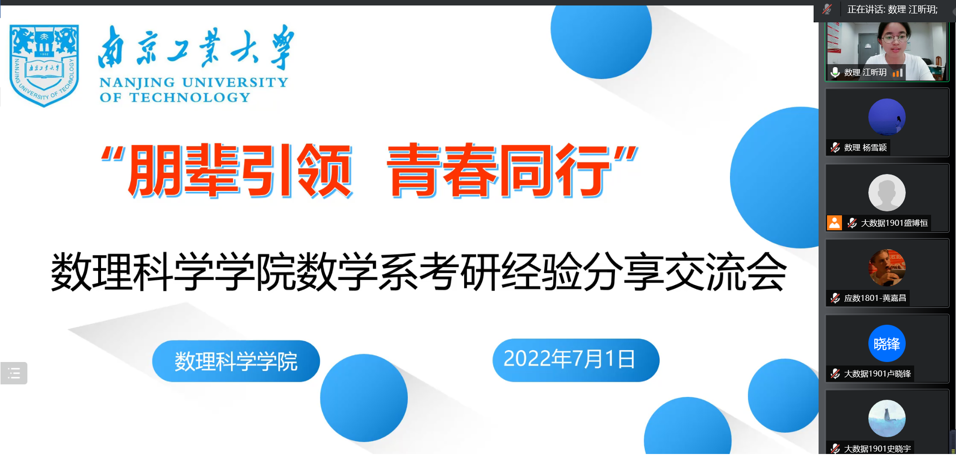 阅读次数: 发布时间:2022-07-05为进一步加强2023届员工对研究生入学考试的认识,明确考研目标,掌握相关考研技巧,了解更多考研信息,增强考研斗志,太阳集团tcy8722于7月1日晚19:00通过腾讯会议方式举办了“朋辈引领,青春同行”考研经验分享交流会。本次会议由2019级辅导员江昕玥主持,公司2019级立志考研的同学参加了此次会议。