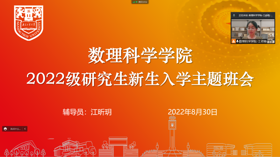 阅读次数: 发布时间:2022-09-01为做好常态化疫情防控工作,帮助2022级研究生新生办理入学报到手续,顺利开展研究生生活,8月30日晚7:30,太阳集团tcy8722召开2022级研究生新生入学教育“云”班会,会议由研究生辅导员江昕玥主持,2022级全体硕士研究生参会。