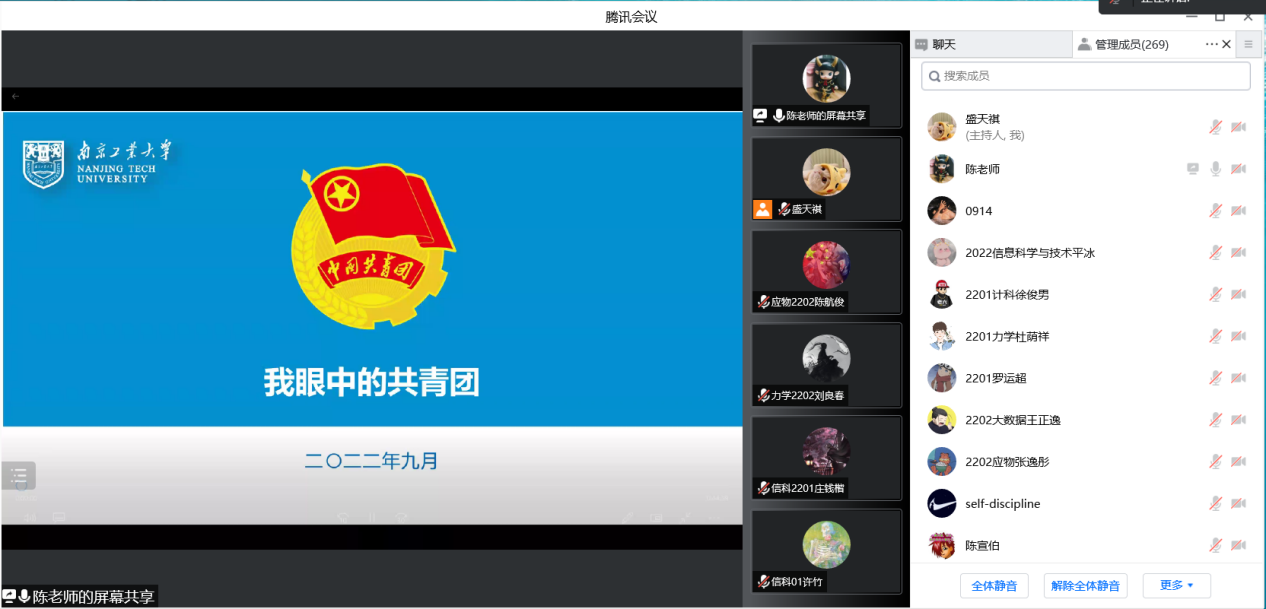 讲座开始,陈老师首先向同学们讲述了共青团的创建以及共青团的历史与发展,简明扼要的介绍了团旗、团徽的重要性。随后陈老师为同学们介绍了推优的流程,并从第二课堂成绩单为同学们强调了社会实践活动的重要性。最后,陈老师对校团委的六个部门以及公司团委进行介绍,鼓励同学们积极参与学科竞赛、积极加入自己感兴趣的部门。